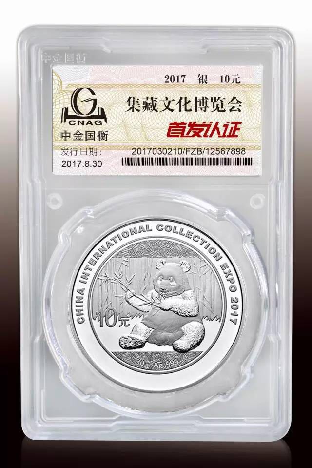 中国人民银行自2017年8月30日开始发行2017中国国际集藏文化博览会熊猫加字纪念币,包含银质纪念币1枚。现面向社会接收“首发认证”预约。